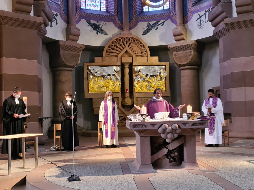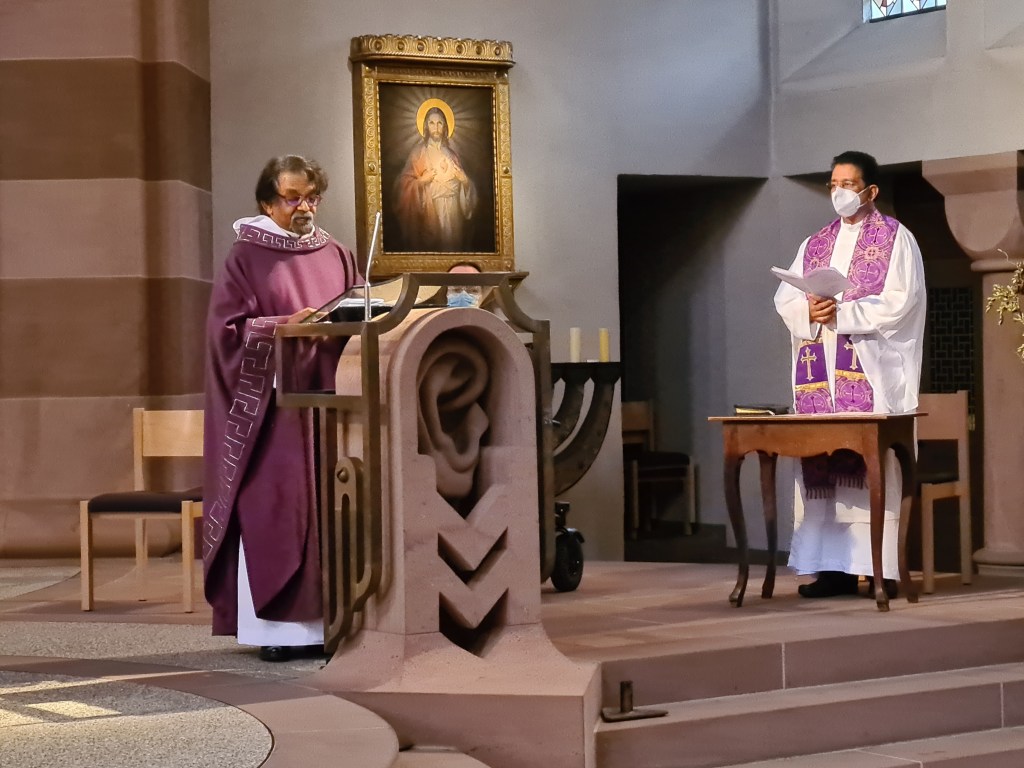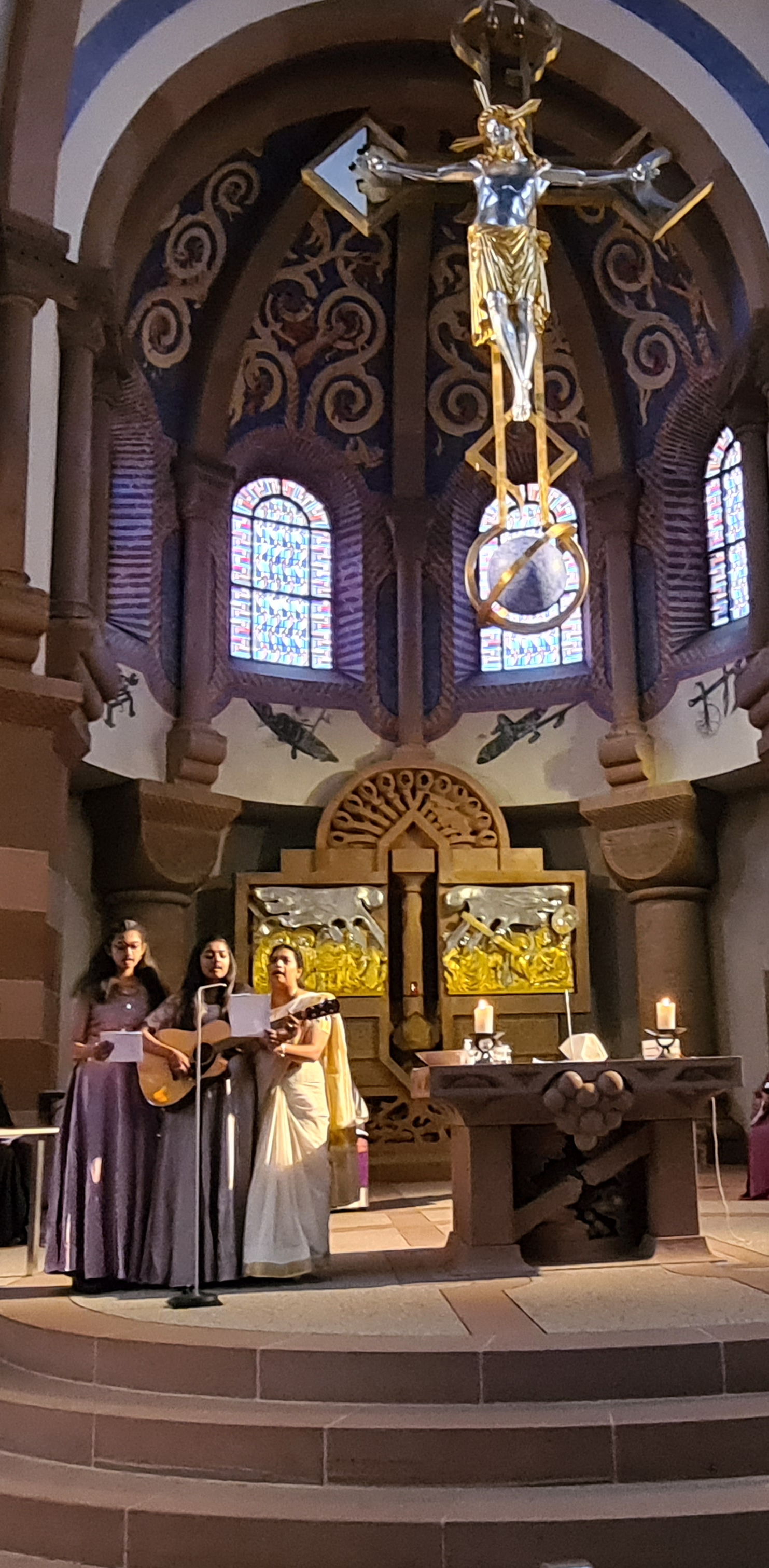 The licensing service was held at St Michael’s church, Freiburg-Haslach, and was attended by many friends and well-wishers, both in person and from home. Running to almost two hours, plenty of space was given to representatives from churches from Freiburg and beyond, many of whom generously presented thoughtful welcome gifts, and all of whom eloquently expressed their support and encouragement for Vinod’s ministry. Music also featured prominently with members of the ACF music group and choir using the church’s wonderful acoustics and powerful organ to great effect. A special treat was given to those present when Vinod’s wife Molly and daughters Dorothy and Gigi sung movingly to mark the occasion with a beautiful personal touch.