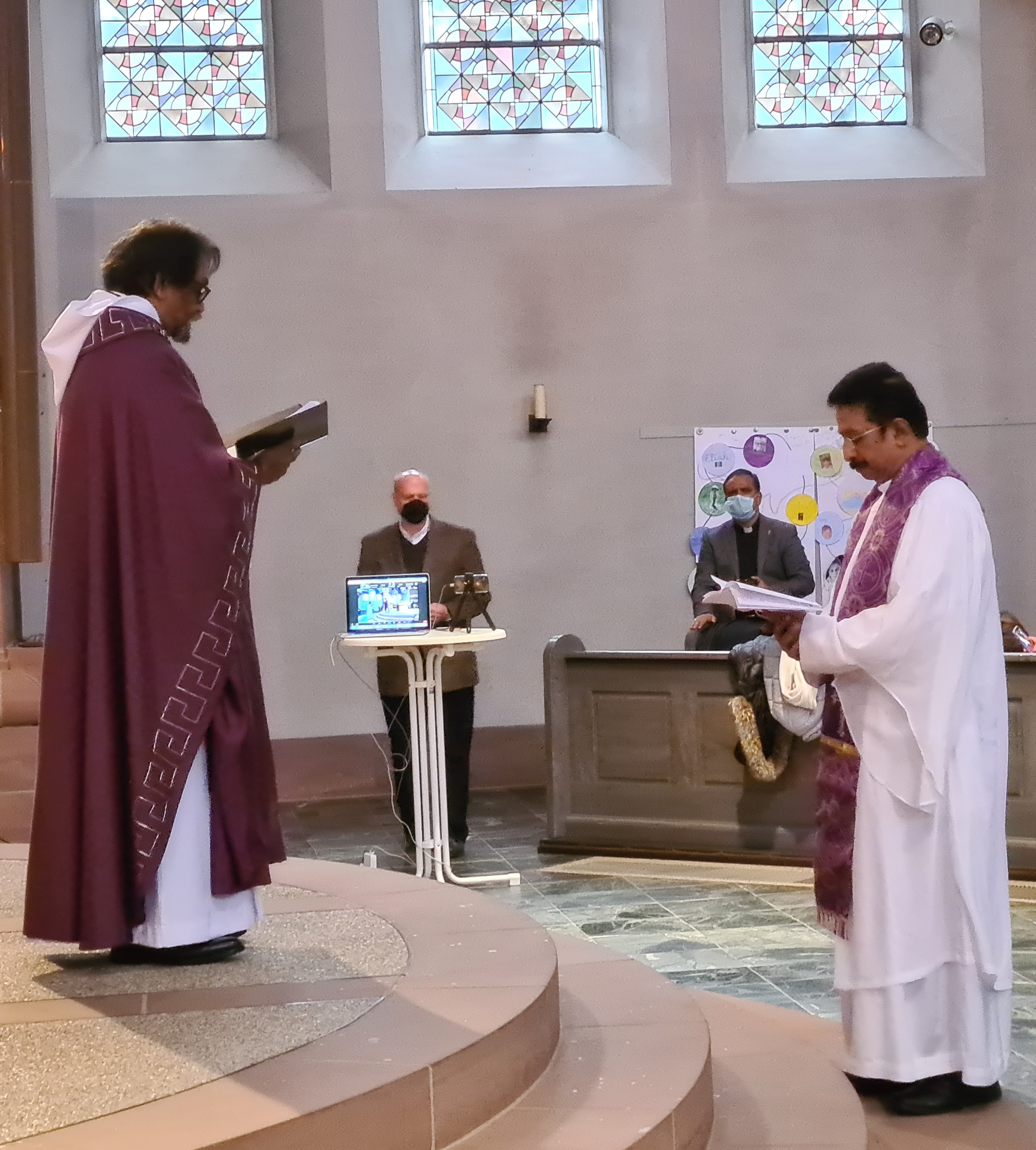 On the third Sunday of Advent 2021, the Anglican Church in Freiburg turned the leaf on a new chapter in its history. After an extended interregnum of 16 months, the Reverend Vinod Victor was licensed by Ven. Canon Dr Leslie Nathaniel on behalf of Bishop Robert and became our new vicar.
