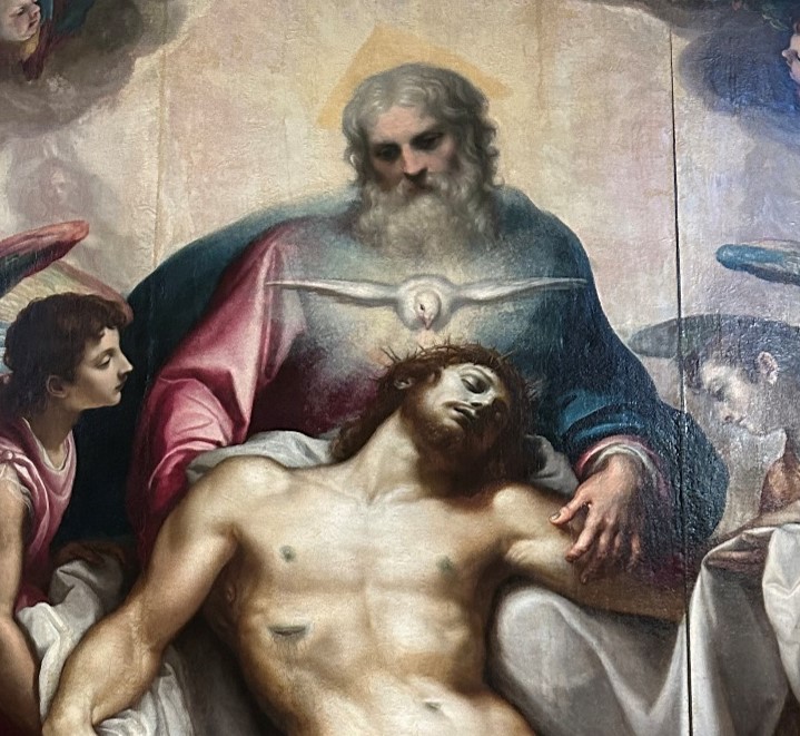 Since Florence is teeming with religious art, being there was very conducive to Lenten contemplations. The city has so many stunning images of our Lord, depicted during various times of his life, including some of the Father holding and supporting the Son. We came across this moving and unusual depiction of the Trinity in the Santa Croce church.