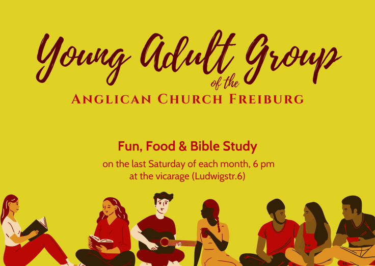 A diverse group for young adults, meeting on the last Saturday of each months at the vicarage (Ludwigstr. 6) for good conversations, some food and bible study.