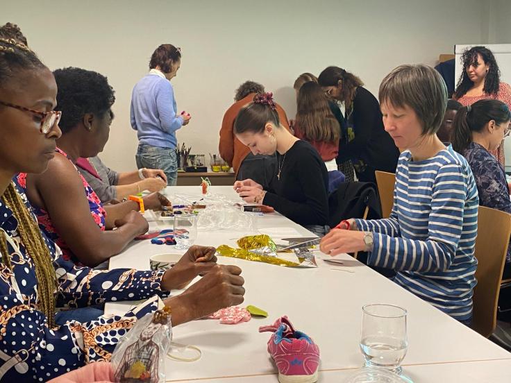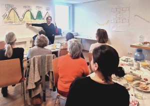 Linda, originally from the USA and with a background in education, structured her topic with clear elements. Firstly, she took us to her own life: when and how she came to Freiburg in 1970 as a student in foreign languages. Later, she went back to Philadelphia, working as a professional translator and studying a second degree in occupational therapy. Love brought her again to Germany, where she started her chapter as a marriage migrant. After presenting a summary of her life, Linda guided us with six questions regarding our own life as migrants. Why we came to Germany; who we were before we came to Germany; the different phases we experienced as migrants (the honeymoon; the distress; the reintegration; the autonomy and the independence) and the main characteristics of every phase. Once Linda finished the theory part, there was an open, honest, emotional discussion from the international women presented. The title of her talk was: “Marriage or work Migrant to wise one: phases of setting in.”